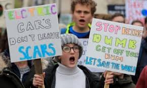 My issue is artificial light and air pollution and it was pretty easy to find protest signs in favor of diminishing light pollution and respecting mother nature more than we are currently doing but it was a little trickier to find protests against supporting the ideas of doing your part to help clear the ozone layers. The first protest sign I posted is in favor of helping our ozone layer. Many people are pictured wearing protective masks and holding various signs. The most bold sign saying “Wake up and Smell The Smog” is trying to make people aware of the smog we are breathing in on a daily basis and what actions we need to take to make changes to our society and make breathing easier. The second sign is the closest argument I could find against taking action and it reads “Electric cars don’t leave scars” which can be arguably untrue as these cars also give off emissions that can be negative for our environment. It was pretty difficult to find a protest against protecting our skies because I do not think there are many protests for people who are in favor of the destruction of the ozone layer and enjoy having trouble breathing on a daily basis. If I was going to create my own protest sign I would consider having it say something along the lines of “Turn off the lights and turn on the stars”. I would create a sign like this to try and spread awareness to others that if we turn off more artificial lights more regularly we can actually view and see the brightness of the stars to their full extent.